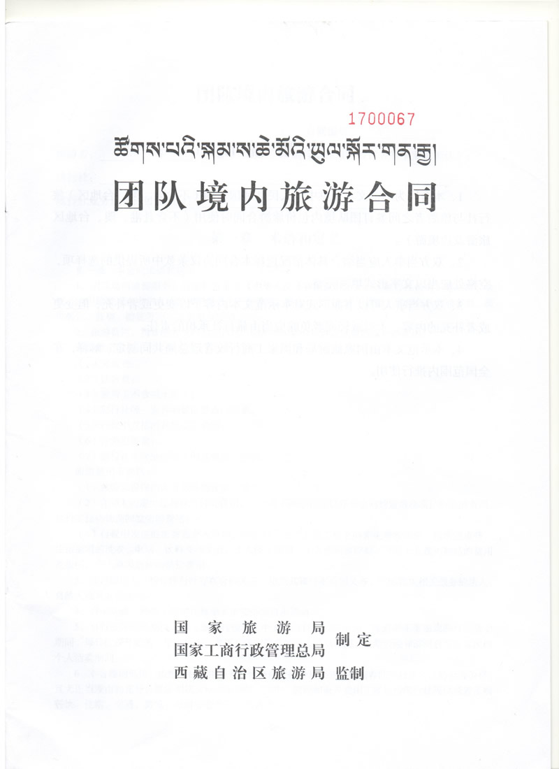 《西藏自治區(qū)國內(nèi)旅游組團(tuán)合同》