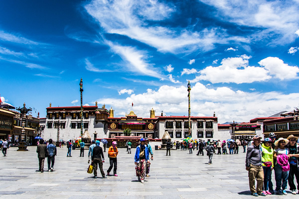 游覽充滿濃郁虔誠信仰的圣城拉薩,前往世界上海拔最高的宮堡式建筑群布達(dá)拉宮(游覽時(shí)間約2.5小時(shí)),公元七世紀(jì)松贊干布為迎娶文成公主而興建,整座宮殿有鮮明的藏式風(fēng)格,依山而建,氣勢(shì)雄偉,紅宮里面珍藏有歷史悠久的金質(zhì)靈塔和珍貴的壁畫、唐卡、佛像,白宮是西藏歷代達(dá)賴?yán)锲鹁印⒄b經(jīng)及處理行政事務(wù)的場(chǎng)所。午餐后,游覽參觀建于吐蕃王朝時(shí)期的最早的佛堂-大昭寺(游覽時(shí)間約1.5小時(shí)),寺前終日香火繚繞,信徒們虔誠的叩拜在門前的青石板上留下了等身長(zhǎng)頭的深深印記,萬盞酥油燈長(zhǎng)明,留下了歲月和朝圣者的痕跡。游覽結(jié)束后,游客自行游覽八角街,感受一下西藏的人文風(fēng)土,瀏覽民族特色和異域風(fēng)情的手工制品。(此天行程寬松,全程游覽時(shí)間在6小時(shí)左右)