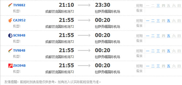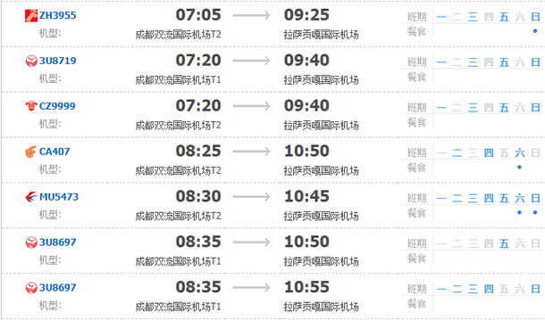 以上就是成都飛拉薩的航班時刻表,起飛時間,到達時間,及固定航班日期。